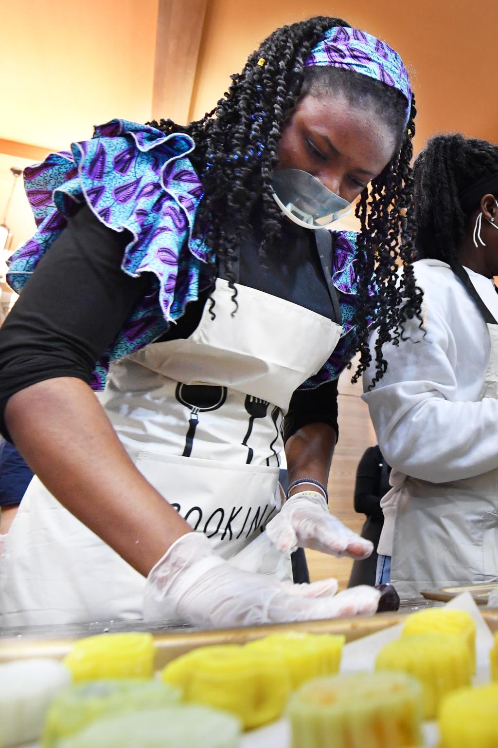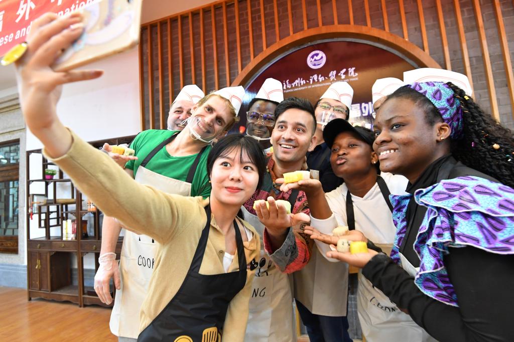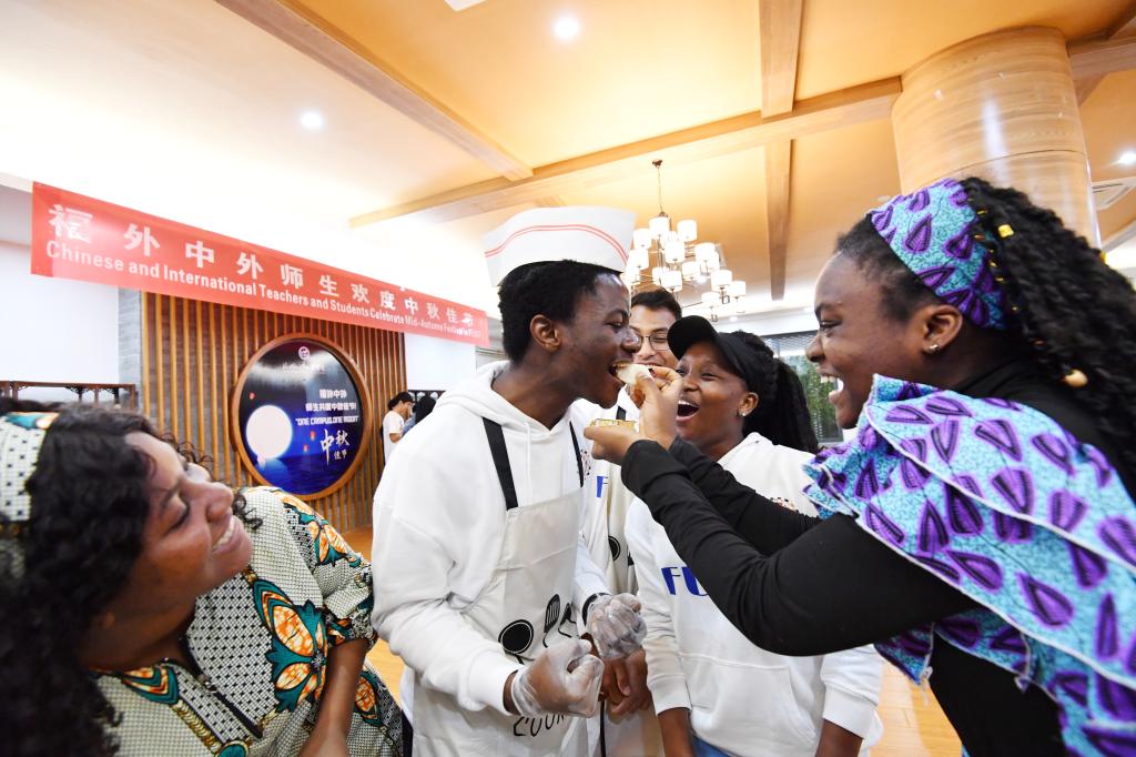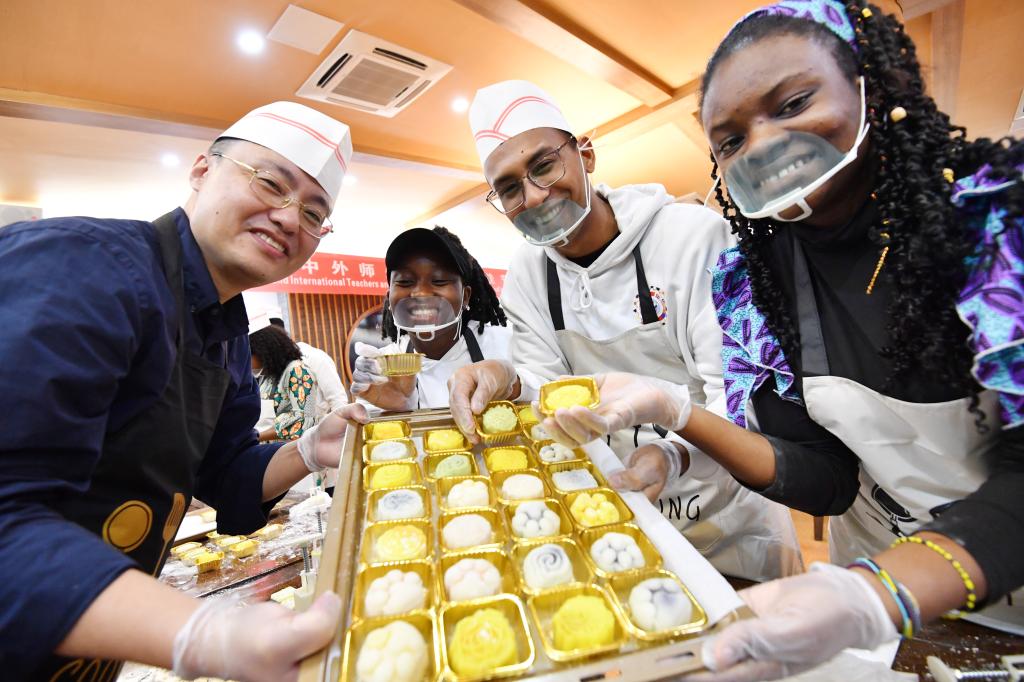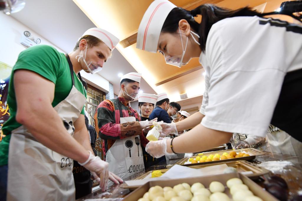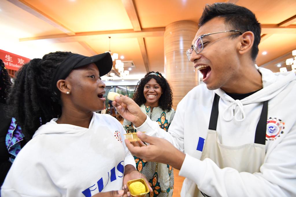 9月29日,中秋节来临之际,乐鱼网页版来自英国、法国、西班牙、尼泊尔、利比里亚等国家的外教和留学生与中国学生齐聚一堂,一起制作中国传统的手工月饼,感受别样中秋韵味。
