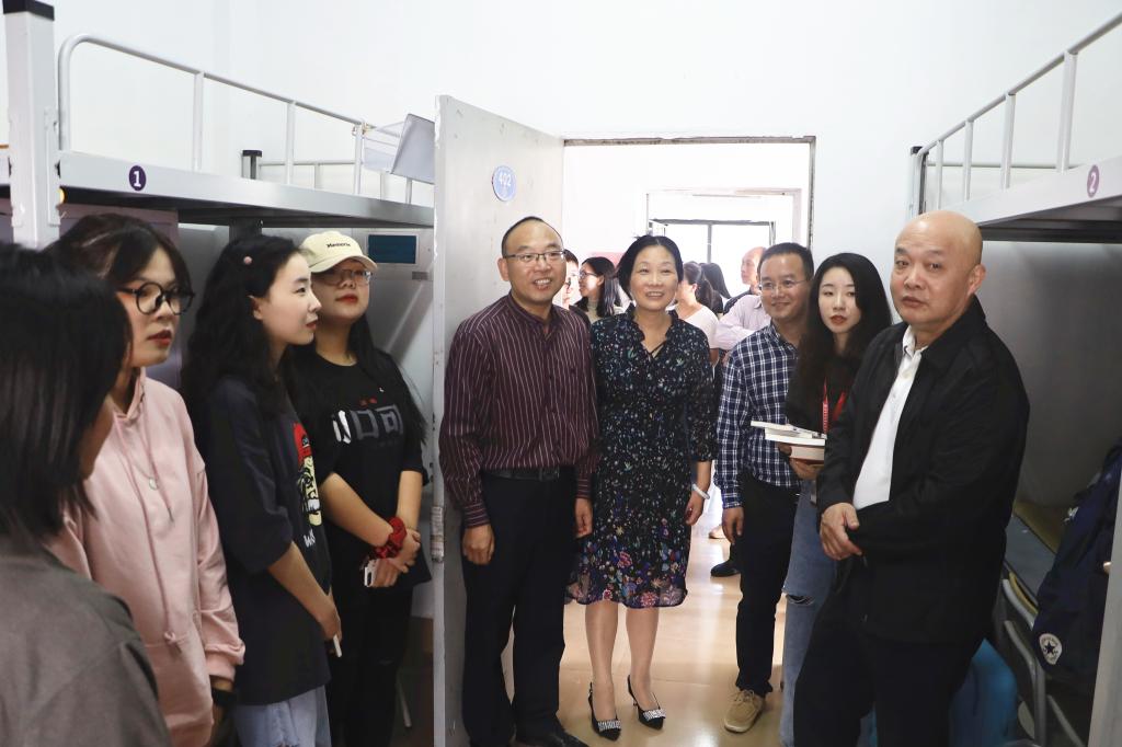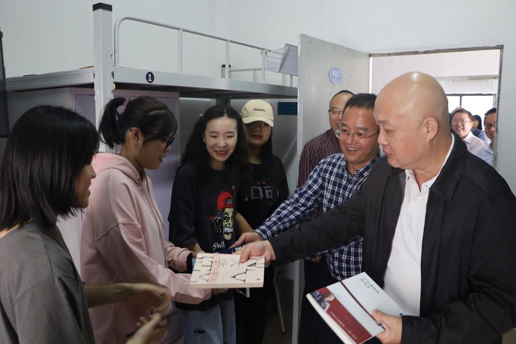 下午3时许,校长许明、党委书记陈炳钦分别带队来到西区学生宿舍楼、北区学生宿舍楼看望2020级新生,并亲切慰问迎新工作人员。校领导勉励新生,在遨游知识海洋、结交新伙伴、参加丰富多彩的社团活动的同时,也要经常和家人联系,主动告知家人在大学的学习生活近况,回报家长的关爱。