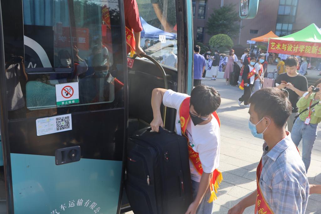 上午9时,校门口已是人头攒动,很多同学在家长的陪同下来到学校大门口,因常态化疫情防控需要,校园实行相对封闭式管理,外来车辆、家长及陪同人员不能进校,新生们在校门口卸下行李时,依依惜别前来送行的父母,热情的志愿者马上上前为他们分担行李,新生家长陈阿姨对学校的校门管理表示理解,她说,“看到校园完备的设施以及热情服务的老师同学们,对孩子入学感到放心。”