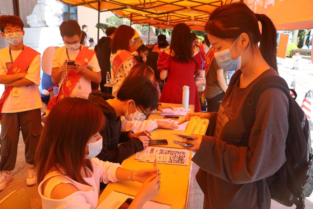 中午1时,同时也是一天中太阳最毒辣的时间,迎新现场依旧热情不断,迎新志愿者们争先恐后、团结一心、冲锋在前,工作不分学院,只要是新生,他们都热情上前、用热心行动温暖新生。