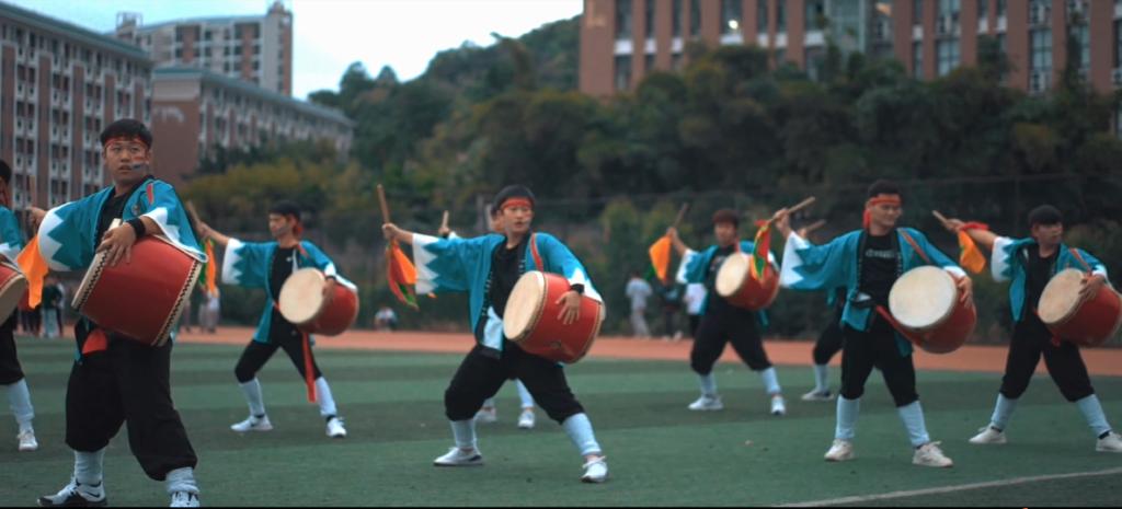 这次,他们将“融会中外 经世致用”的校训内化于心、外化于行,把日本的太鼓舞蹈与颇具中国传统韵味的扇子舞相融合,并在学校取景将拍摄了一支太鼓舞蹈VCR。在短短数分钟的舞蹈里,我们既能从中体验到中日文化交融的新奇感,又能看见我校在教育方面的创新尝试。