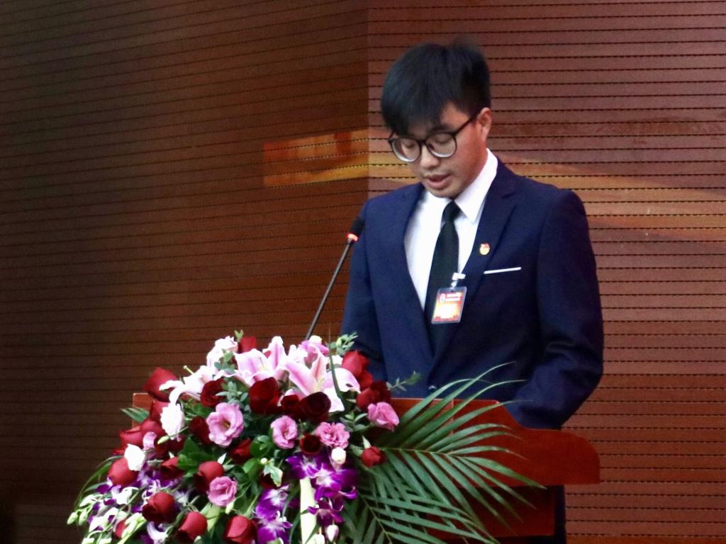 学生代表洪智龙宣读乐鱼网页版第六次学生代表大会倡议书