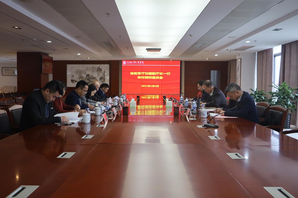 1月4日,福建省教育厅副厅长刘健(正厅长级)、高教处处长张文东、科技处处长郑邦华、教师处工作处长许志勇一行莅临我校调研教学、科研、师资队伍建设等方面情况。校领导吴新星、许明、黄建平、季祖强陪同调研。