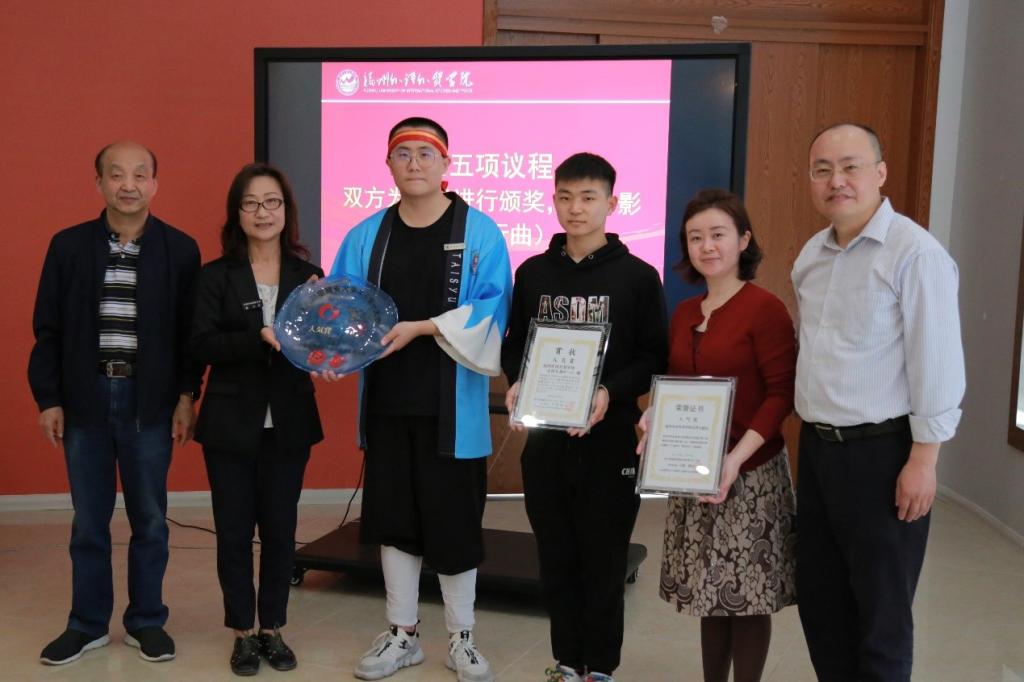 张小云为我校太狩太鼓队颁发第六届福建省高校冲绳太鼓Eisa冠军大赛“人气奖”。张小云在讲话中表示,融入民族舞蹈、汉服、古风配乐的太狩太鼓队让大家记忆犹新,期待太狩太鼓队更加茁壮,希望通过太鼓文化能够让两地文化交流更加深入,友谊更加坚固。