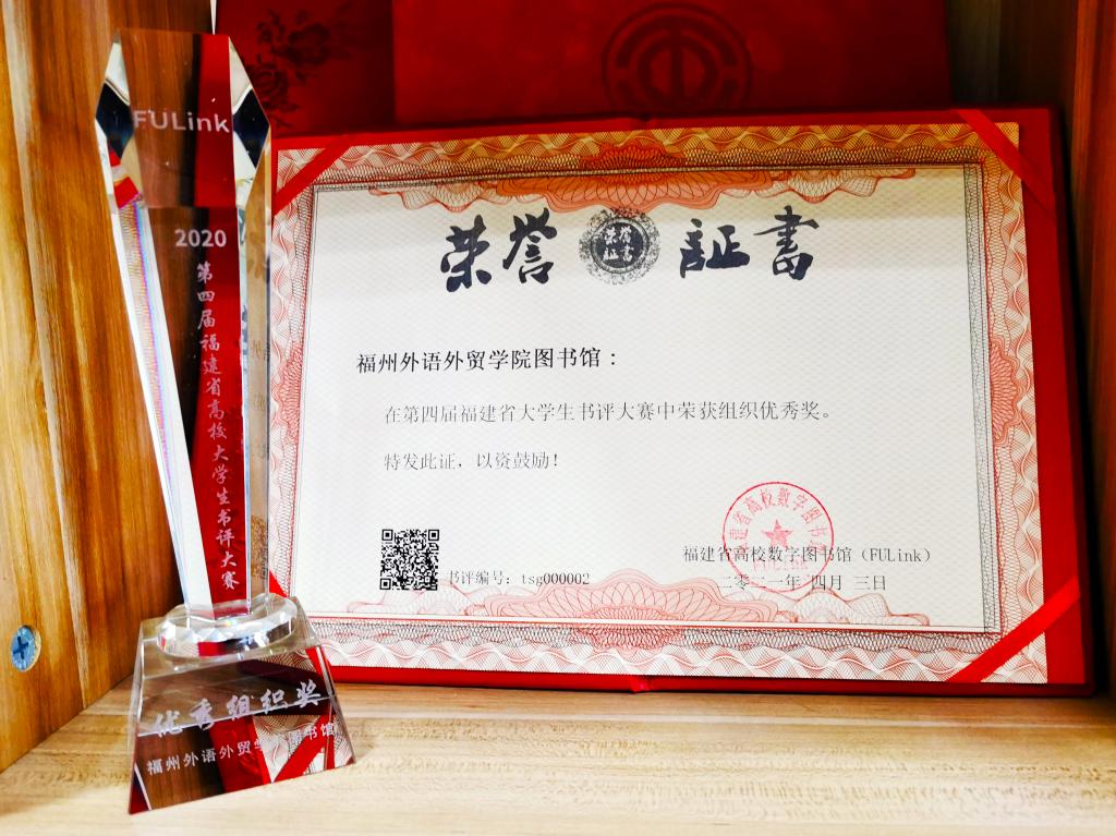 近日,由福建省高校数字图书馆(FULink)主办的第四届福建省大学生书评大赛举行颁奖典礼,我校吴雪融等20名学子的书评文章获得学生组个人荣誉奖项(其中一等奖2篇、二等奖3篇、三等奖5篇、优秀奖10篇),教学资源中心陈晨健等4名教师的书评文章获得馆员组优秀奖,我校图书馆还荣获优秀组织奖。