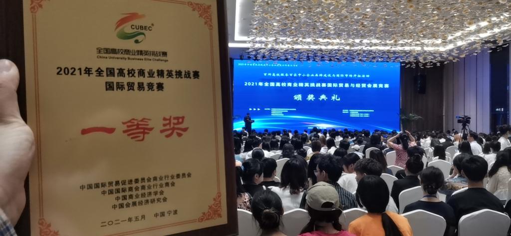 5月6日至10日,2021年第十一届全国高校商业精英挑战赛国际贸易与经贸会展竞赛在浙江省宁波市举行。来自全国21个省、自治区和直辖市的116所高等院校209支参赛队入围全国总决赛。经过激烈角逐,我校经管学院(国际商学院)学生陈靖怡、李鸿宇、白航宇、费泓皓和外国语学院学生陈可、龙清碧组成的参赛团队(指导教师:陈忠)荣获全国一等奖,获奖成绩居省内同类高校前列。