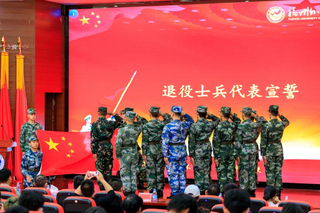 活动在雄壮的国歌声中拉开序幕。我校6名优秀退役士兵大学生围绕奉献青春、点燃梦想、报效祖国、收获成长等方面分享了各自携笔从戎、参军报国的军营故事,讲述了立志从军、角色转变、克服困难、为校争光的个人经历。20名退役士兵代表在国旗下作退役宣誓,他们以铿锵有力的口号传达着退役士兵退伍不褪色,为军旗增辉,为部队争光,为学校建设发展再立新功的决心,在场师生无不为之感动、受之鼓舞。