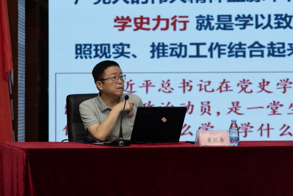 培训班上,校长助理、校务中心主任黄跃舟为青马班学员作《重温百年党史,汲取奋进力量》专题讲座。他从“深刻领会习近平总书记关于党的历史重要论述”“全面了解中国共产党百年奋斗光辉历程和历史成就”“深入领悟中国共产党百年历史经验的启示”以及“通过党史学习教育,学懂弄通做实习近平新时代中国特色社会主义思想、四个自信、四个意识、两个维护”四个方面为学员们进行了系统讲解和精心阐述。