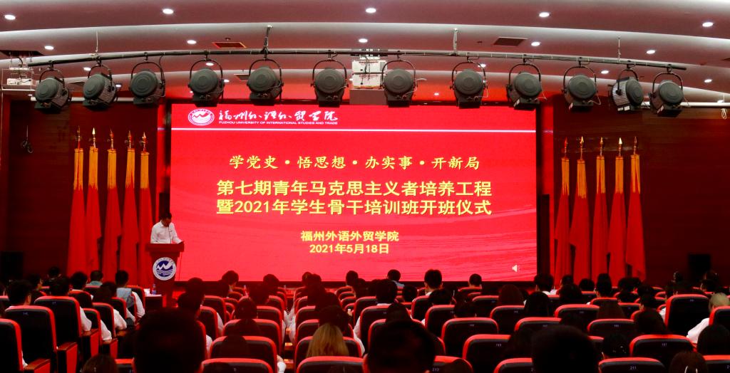 5月18日,我校举行第七期青年马克思主义者培养工程暨2021年学生骨干培训班开班仪式。校党委书记陈炳钦,党委副书记、副校长徐国立,学生工作部负责同志,各学院分党委书记,校、院团学工作负责同志出席仪式。培训班全体学员及校、院团学骨干等三百余人参加仪式。