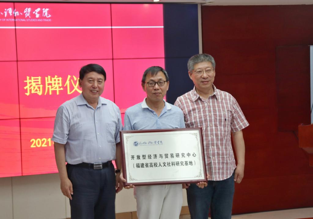 研讨会后,佟家栋教授、黄建忠教授、崔日明教授、彭水军教授分别为我校开放型经济与贸易研究中心(福建省高校人文社科研究基地)、乐鱼网页版自贸区研究院授牌。
