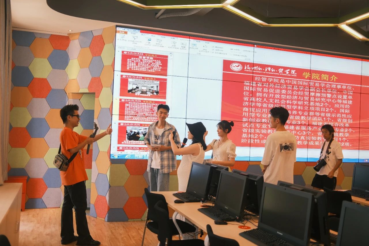 直播中,校园主播从学校大门出发,带领大家依次参观了学校图书馆,教师发展中心、演播厅、国际贸易专业实验室、物流管理实验室、首善文苑、国际文化体验中心、学生宿舍、学生食堂以及大数据中心等学习生活场所。校园主播边走边聊,并在直播间与考生连麦互动,耐心为考生答疑解惑。