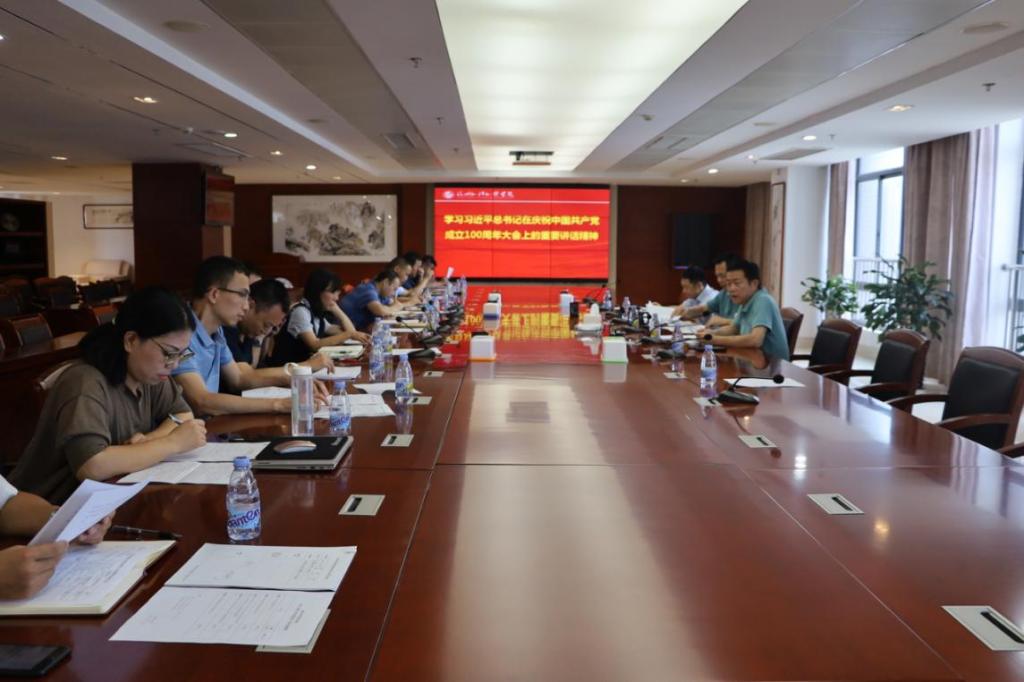 7月14日,我校召开党委理论学习中心组学习(扩大)会,专题学习习近平总书记在中国共产党成立100周年大会上的重要讲话精神,邀请校长助理黄跃舟同志作专题辅导报告。校领导,党委委员,党委部门负责同志,各分党委、直属支部书记参加学习研讨。