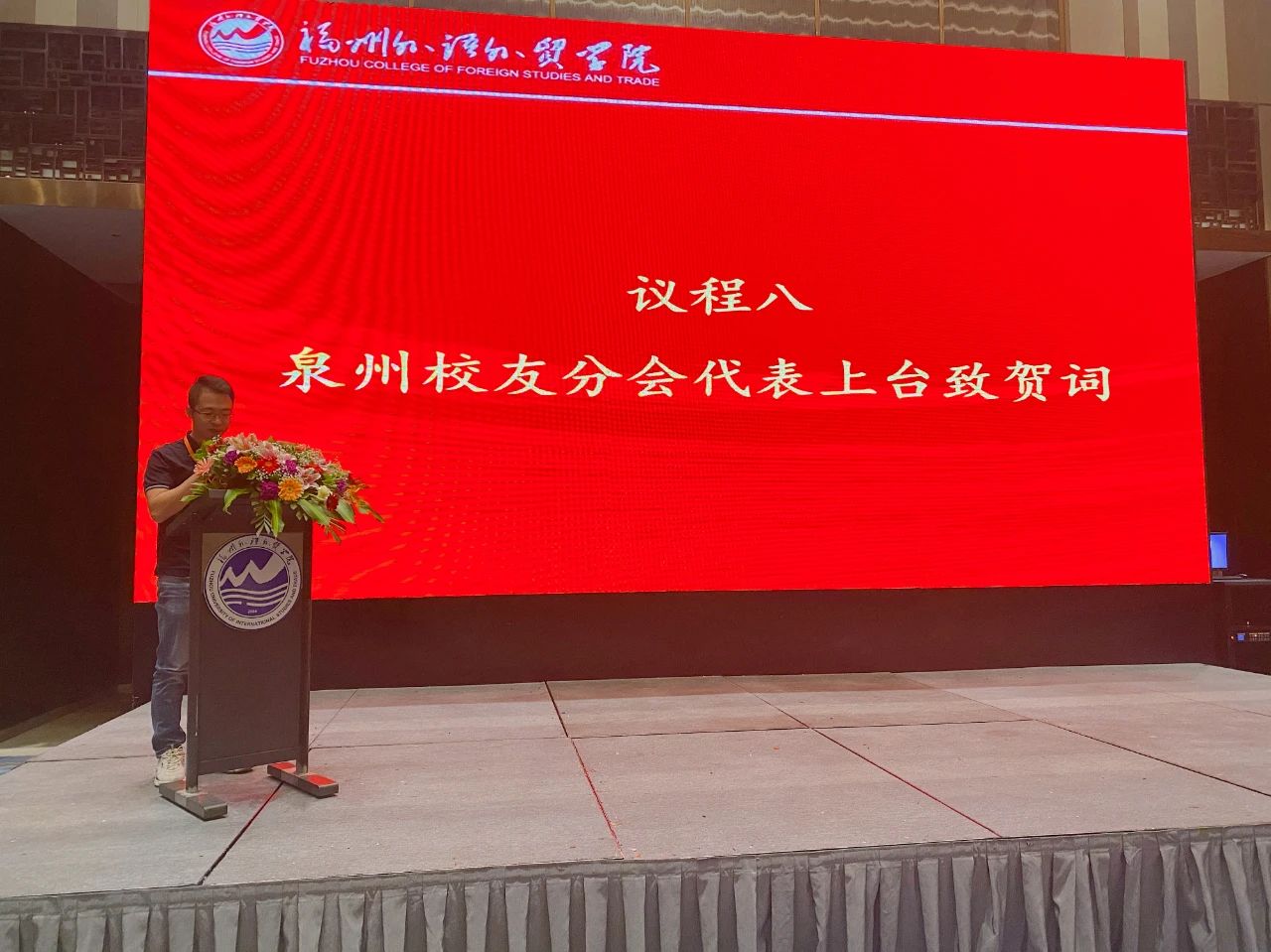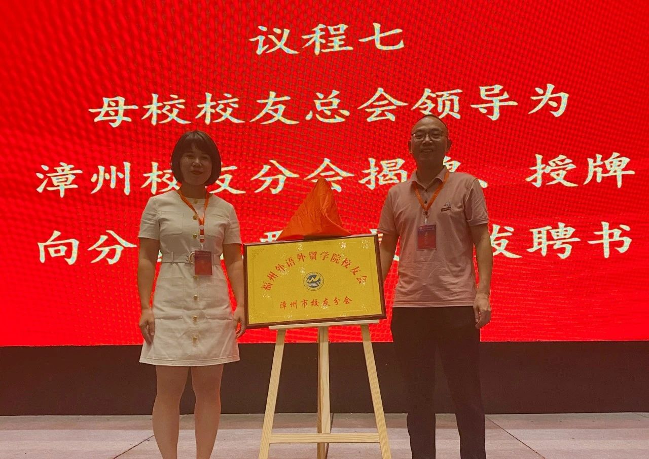 泉州校友分会会长、2010届校友李荣聪代表校友会泉州分会上台致贺词,对漳州校友分会的成立表示热烈祝贺。漳州校友分会新当选会长陈小燕上台讲话,她表示,漳州校友分会的成立,为广大漳州校友搭建了一个增进友谊、联系交流、反哺母校、回报社会的平台,这是一个良好的开端和成功的起步。她倡议校友们继续关注和支持母校的发展,通过校友会这个纽带,增进母校与校友、校友与校友之间的情谊,通过整合各方资源,共同进步。随后,漳州校友分会理事会成员向母校赠予纪念品,并赠言“大爱佑福 善泽八方”,祝福母校教育事业再创新高。