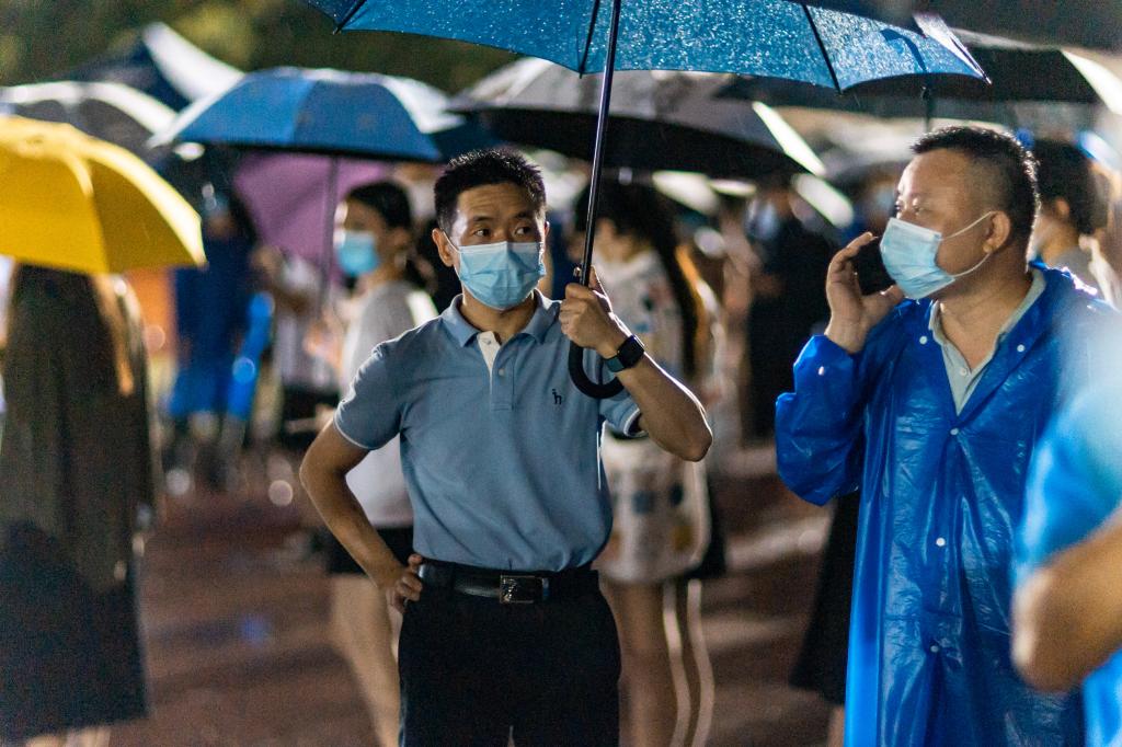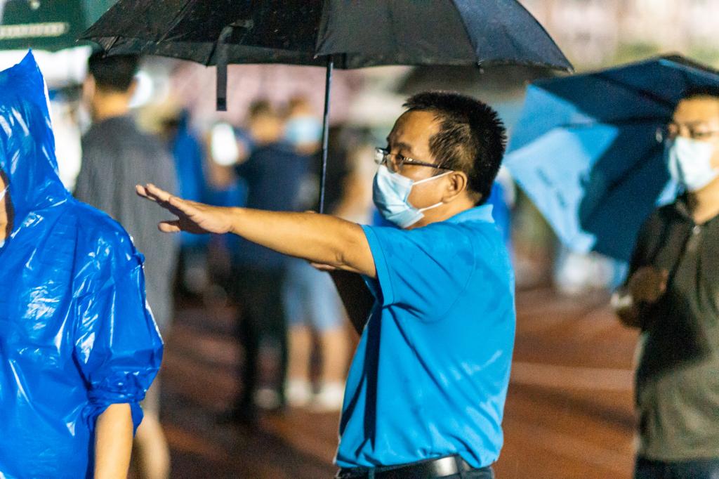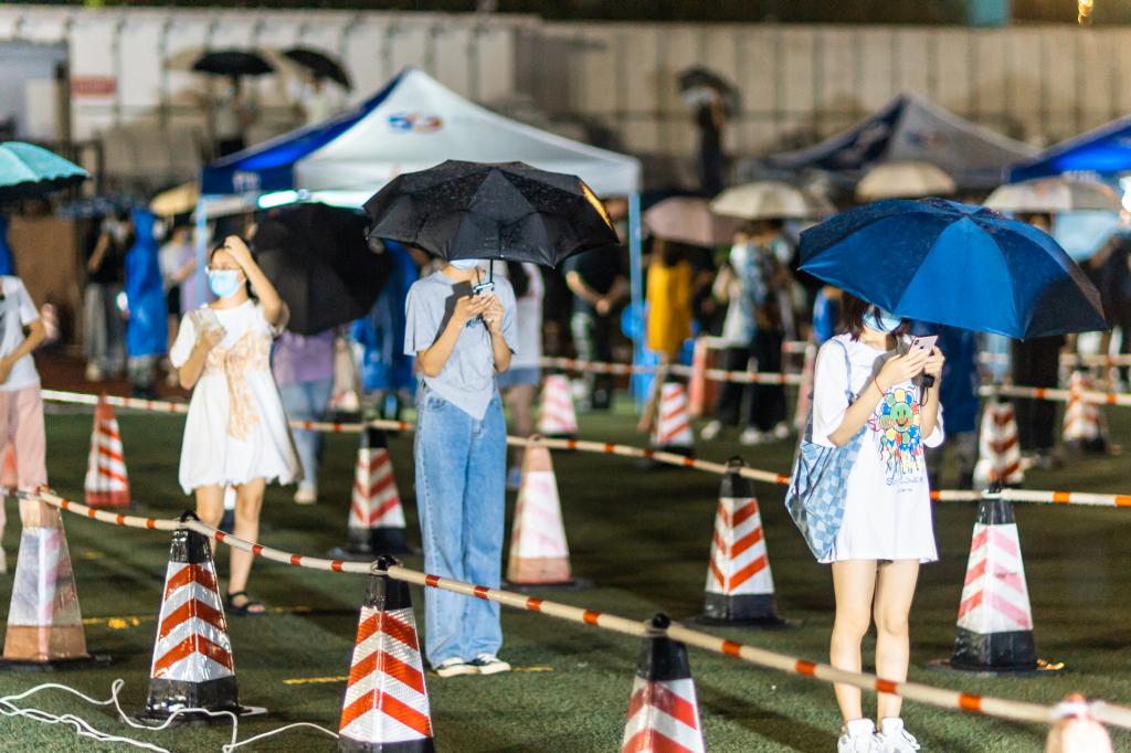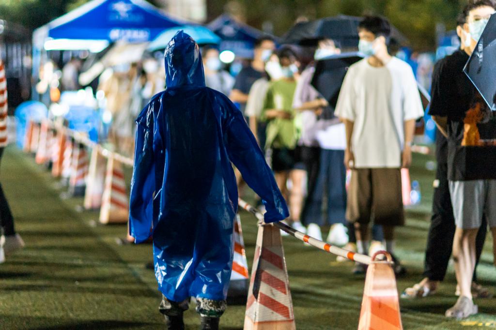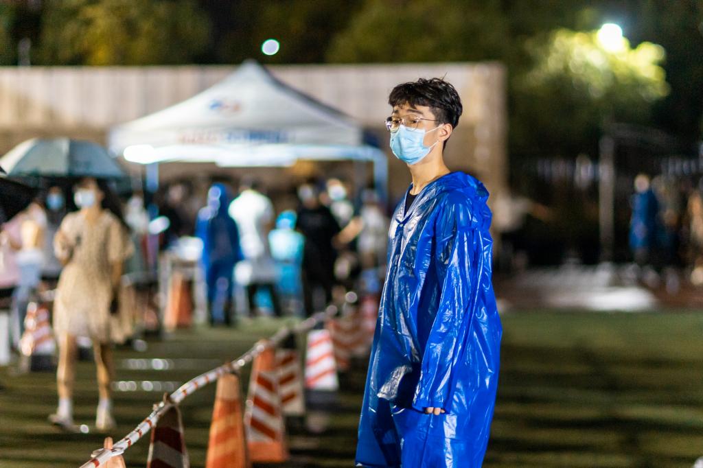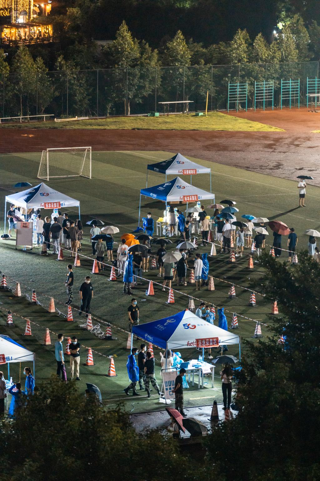 晚7时,演练正式开始,演练现场设有测温区、等候区、信息采集区、标本采集区、采集辅助区等功能区域,检测人员分工明确,工作人员和志愿者有效引导,校领导靠前指挥,师生密切配合,整场演练的环节均严格按照规范流程操作,尽管天降骤雨,现场仍秩序井然。