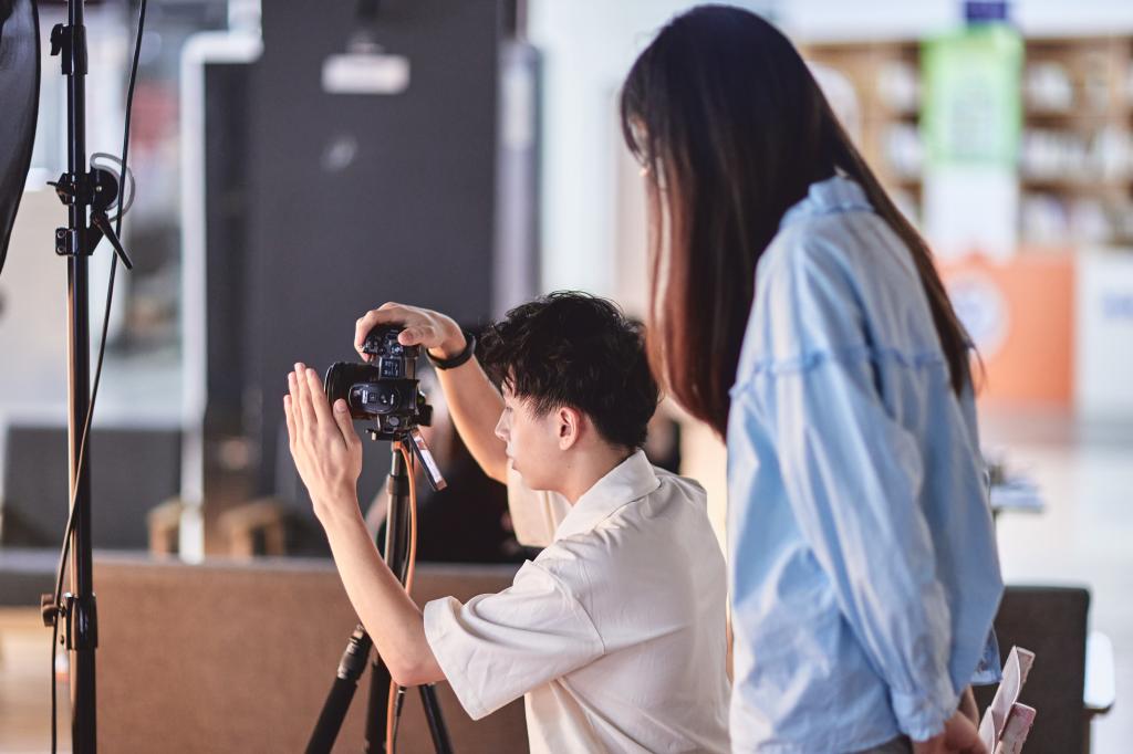 虽是快拍活动,专业设备却一个也不少,相机、无影灯、背景板、反光板...“为方便同学们拍照,我们将摄影棚搬到同学们出行必经的空旷的场地,在摄影质量上追求棚内效果,做到快而不简。”学生创业工作室“立刻有照相馆”成员骆俊龙介绍到。