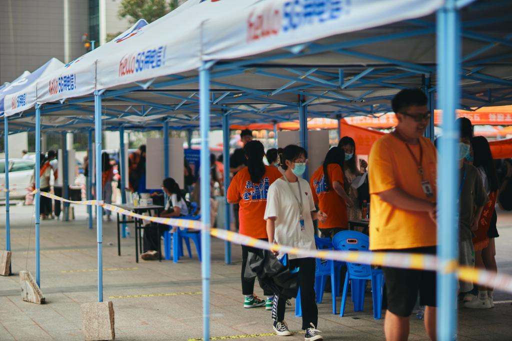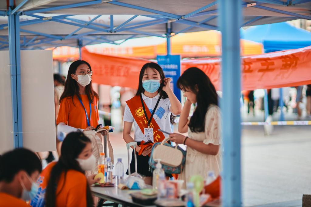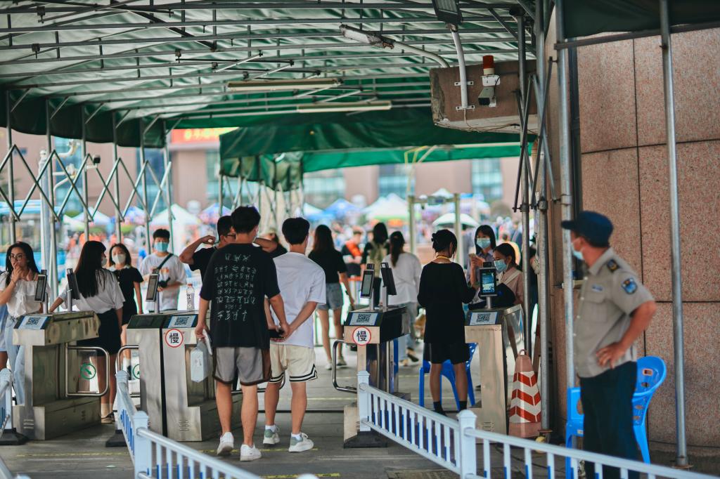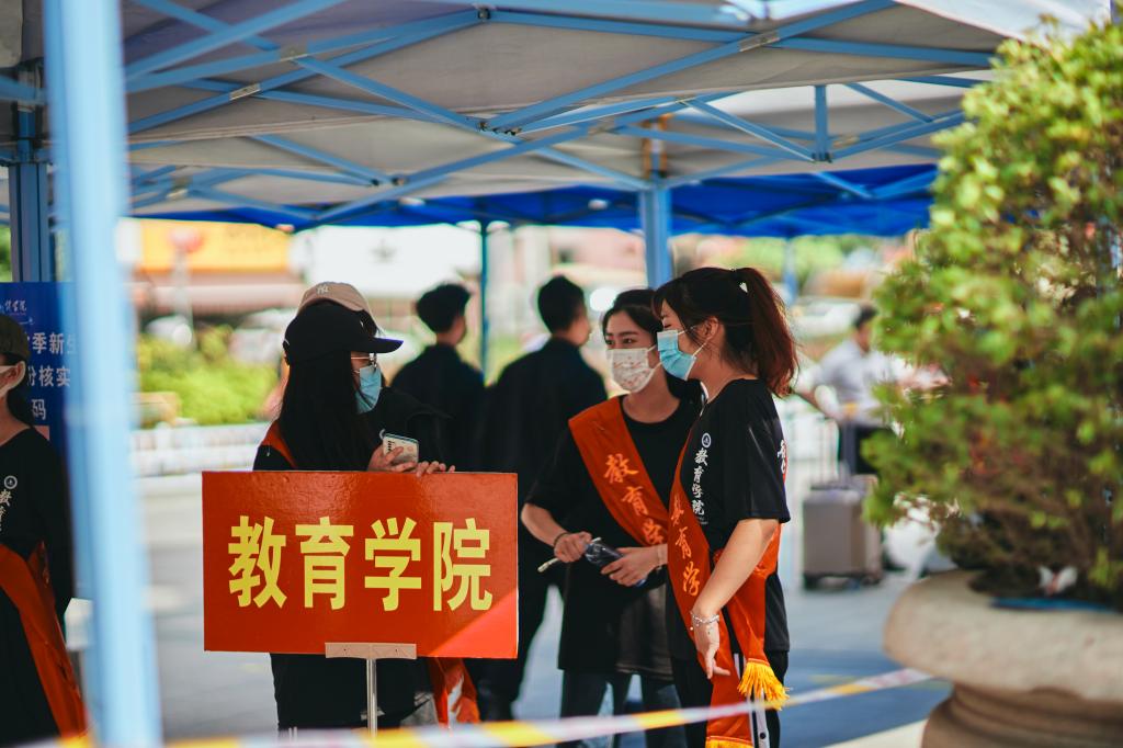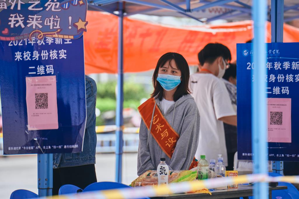 防疫流程不能少,为避免人群聚集,此次返校采取分批错峰的形式,新生们在工作人员的引导下熟练的完成扫码登记和身份核验等流程,入校的同学们也都能自觉佩戴好口罩,有序排队。