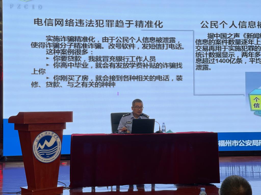 林华榕还介绍了福州警方持续开展“断卡”行动,阐述了对现有银行帐户的管理使用、金融交易等相关规定,提醒同学们保持警惕,保护个人财产安全。