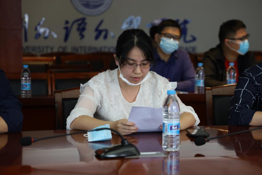会上,机关第一支部书记王彪和财金学院教工第二支部书记田娴作为代表,结合自身学习,分别从行政人员和教师的角度畅谈心得体会。