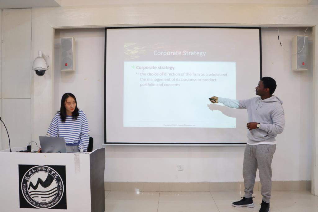 2021级全英授课班学业导师袁越泽、2019级全英授课班学生代表曾芷乐、2021级全英授课班学生代表甘雨露、IBRAHIM SORIE BALDE(巴尔德)依次发言,并向各位领导和同学们致以新学期最美好的祝愿和最真挚的祝福。