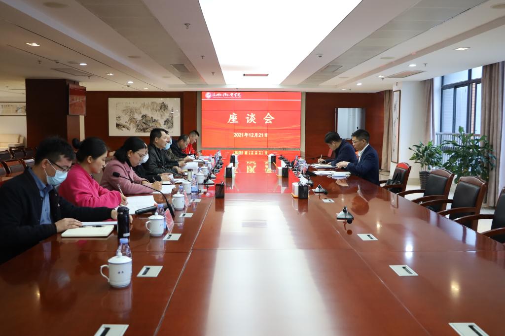 受省委原常委周联清同志委托,12月21日,省委教育工委委员、省教育厅党组成员、副厅长王飏,省委教育工委组织处处长、一级调研员陈洪尧一行莅临我校学习宣传贯彻党的十九届六中全会和省第十一次党代会精神,调研我校党建工作,指导周联清同志联系点党组织建设,与公共教学部党员代表座谈。校党委书记陈炳钦,校党委副书记、副校长徐国立,党委组织部、宣传部、办公室、公共教学部有关同志参加座谈。