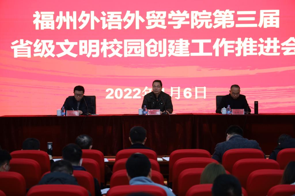 1月6日,我校召开第三届省级文明校园创建工作推进会,校领导陈炳钦、徐国立、黄跃舟,党委宣传部(文明办)、各中心(办公室、图书馆)文明创建工作负责同志,各学院分党委书记及文明创建工作有关同志,全体辅导员等参加会议。
