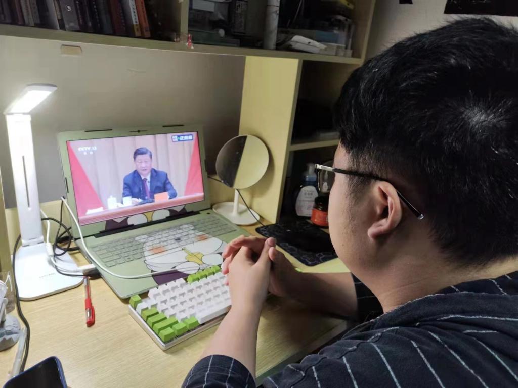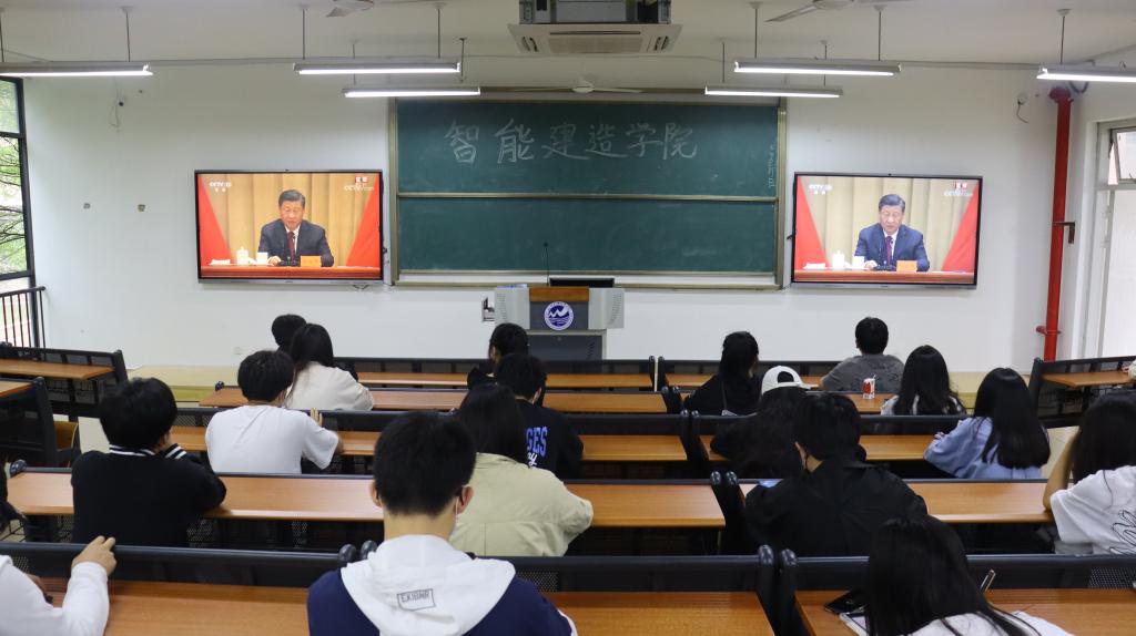 智能建造学院学生翁君喆:观看了大会直播,我心里久久不能平静。青年一代有理想、有担当,国家就有前途,民族就有希望,实现中华民族伟大复兴就有源源不断的强大力量。身为新时代的青年,我们应怀抱崇高理想、充满奋斗激情, 勇挑重担,用青春和热血,继续书写新时代壮丽篇章。
