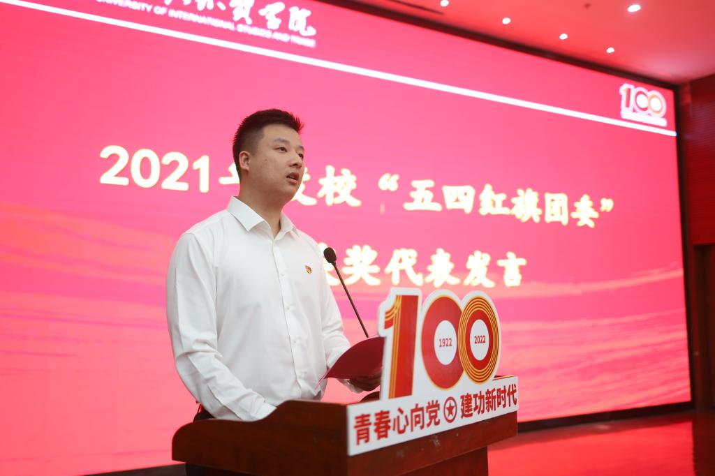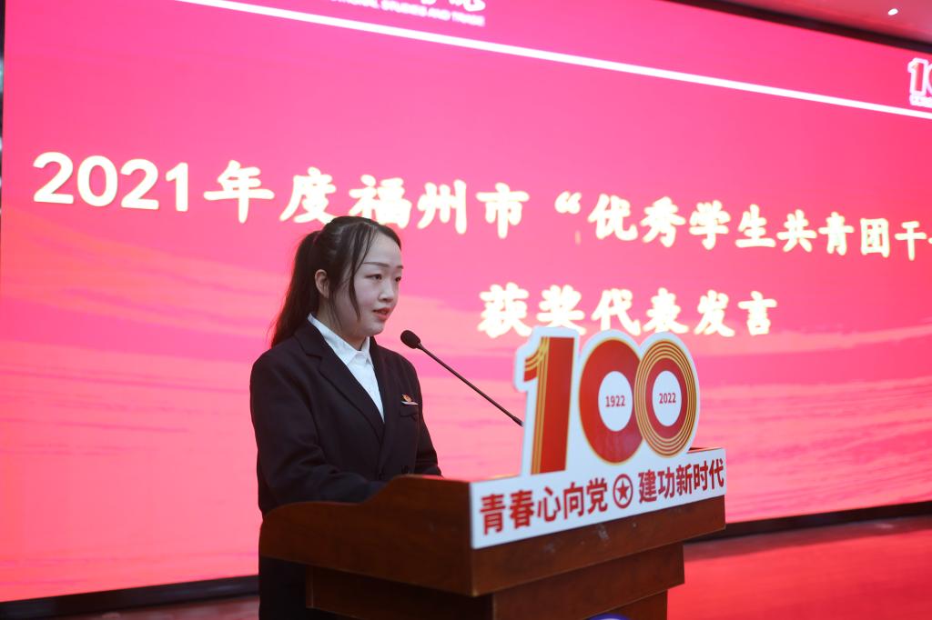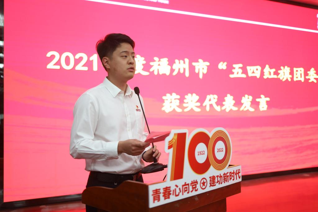 财金学院团委书记陈登宇作为2021年度福州市“五四红旗团委”获奖集体代表发言。他表示,“五四红旗团委”这个称号既是一份荣誉,更是一种鞭策。未来将再接再厉,为实现学校高质量发展贡献智慧力量。努力将团员青年紧密团结在党中央周围,引导他们坚定不移听党话,跟党走,为跑好实现中国梦这场接力赛贡献青春力量。