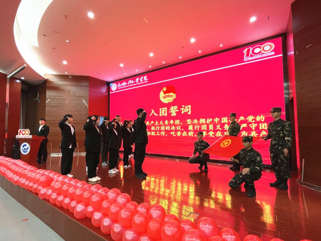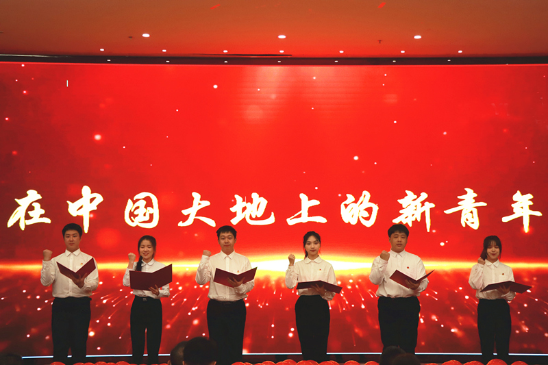 新团员入团仪式上,校团委学生副书记张秀东带领新入团学生代表面向团旗庄严宣誓。