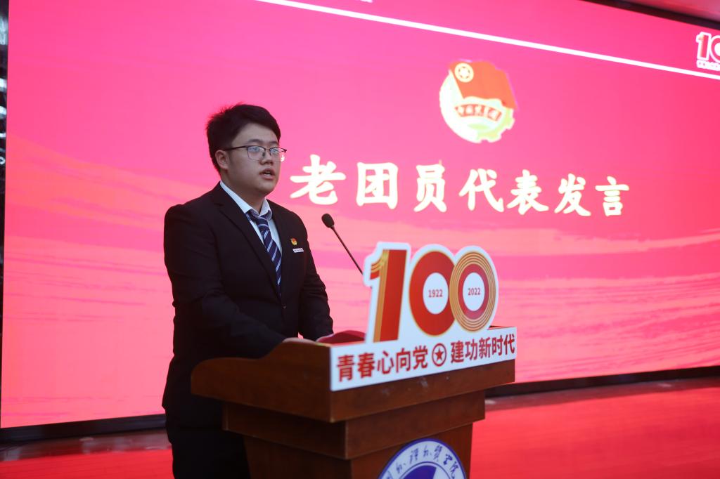 2019级国际经济与贸易专业黄思聪作为老团员代表发言。他以“生逢其时,重任在肩”与广大福外青年共勉。鼓励大家努力提高自身素质和能力,用实际行动诠释福外青年的责任与担当,以昂扬的姿态展现新风貌,以奋进的态度做出新作为,为实现中华民族伟大复兴的中国梦贡献青春力量!