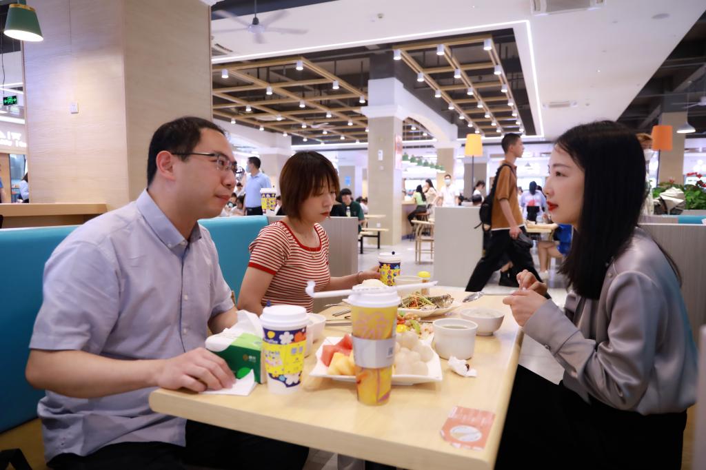 6月2日中午,吴新星董事长来到菁园餐厅与一线教职工共进午餐,经管学院陈尘博士、董事会办公室有关同志参加活动。