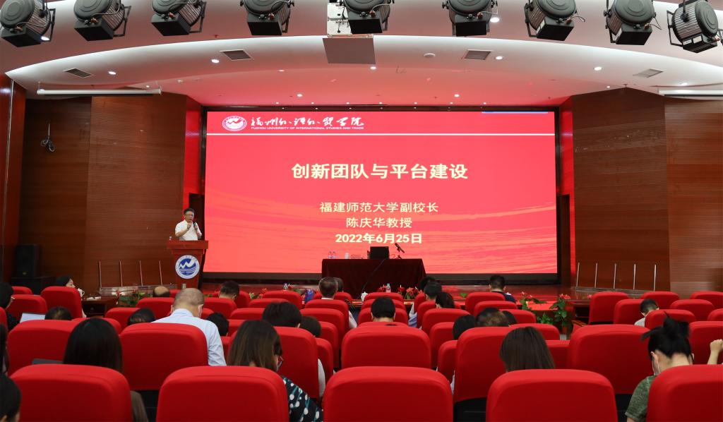 6月25日,福建师范大学陈庆华教授莅临乐鱼网页版,作“创新平台与团队建设”专题报告。执行校长黄建平及220余名教师聆听了报告。报告中,陈庆华教授从习近平总书记对高等教育的区域布局、学科建设和人才培养的重要讲话切入,结合自身对高校管理的认识,讲述了高等教育的变革与发展,阐述了高等院校如何分类发展、错位发展和特色发展。从知行合一,树立正确的世界观、人生观、价值观以及具备良好的师德修养、严谨的学术规范、精良的业务水平等方面讲述教师职业的使命、素养、艰辛、荣光。