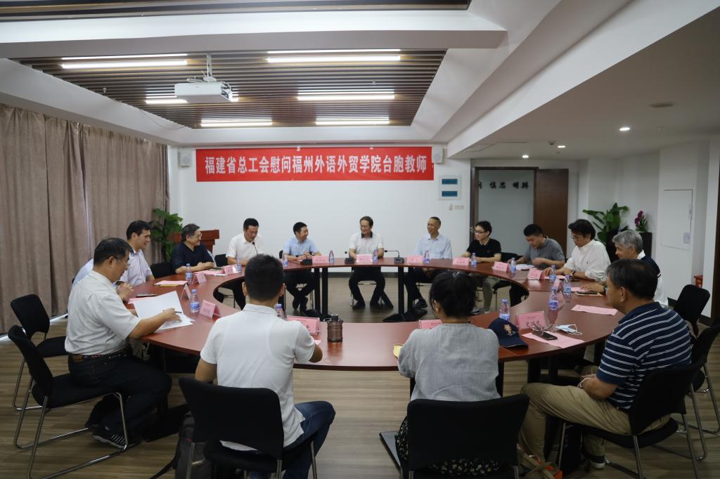 9月6日,在中秋节和第38个教师节来临之际,福建省总工会党组成员、副主席柳公立,省职工科技教育中心主任潘泓等一行莅临我校,代表省总工会看望慰问台胞教师代表,并向广大教职工致以节日的祝贺和诚挚的慰问。校党委书记陈炳钦,副校长、工会主席季祖强,台港澳办及教师发展中心负责同志出席活动。