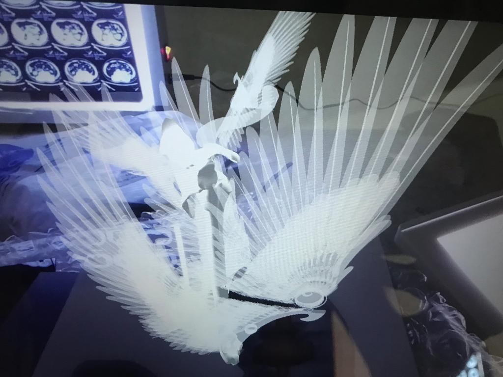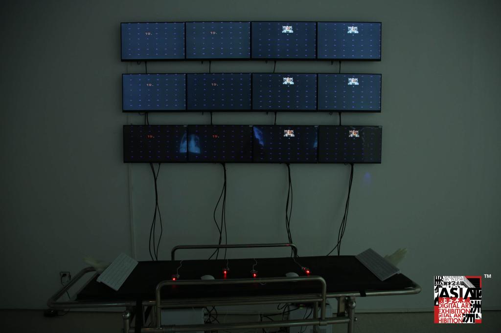该作品把医学影像技术运用到了艺术品当中,加入了AR技术,体感互动技术,心跳传感技术,创造了“患者”与家人之间的对话。提供了在医疗过程中的一种人文情感。