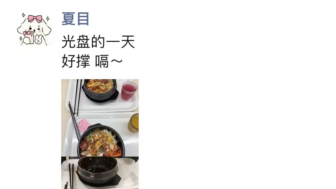 2022级学前教育贺小彤:世间万物,唯有爱与美食不可辜负。粮食不仅仅是我们对于物质上的需求,更是人们在悲苦喜乐之中的见证者与调节剂。它不仅仅可以满足我们每天饱腹的需求,也可以带给我们每一个生命个体增增添更多的斑斓色彩。若要今天的生活更加美好,我们更应当节约粮食。