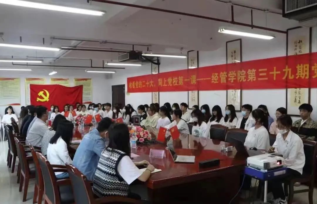经管学院分党委举行别开生面的“收看党的二十大 同上党校第一课”党校开班仪式。开班仪式上,经管学院分党校组织学员共同观看党的二十大开幕盛况。学员代表陈莹莹表示,将以最饱满的精神面貌,最积极的态度,最切实的行动完成本次党校的学习。