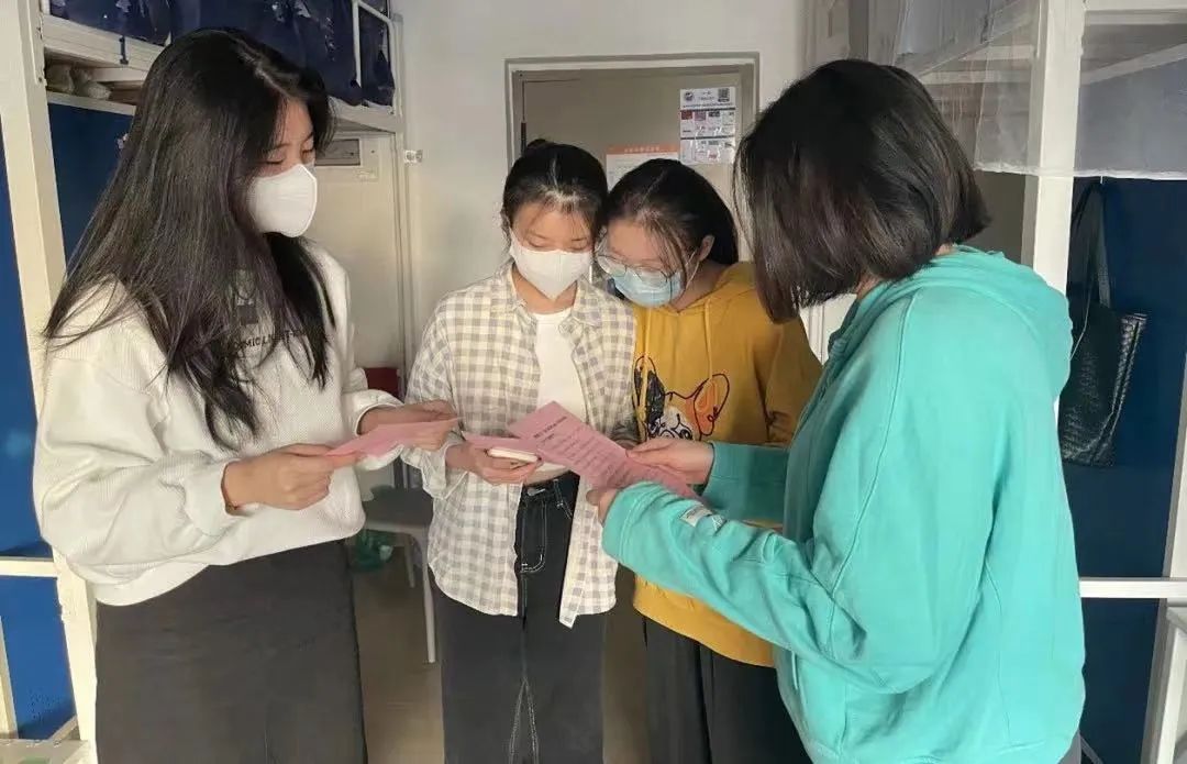 大数据学院分党委的学生党员同志充分发挥先锋模范作用,深入2022级新生宿舍,开展“喜迎二十大,文明我先行”宣传活动。他们来到新生宿舍,为学弟学妹们送上温暖关怀和亲切慰问,并引导新同学认真做好疫情防控,以实际行动迎接党的二十大胜利召开。