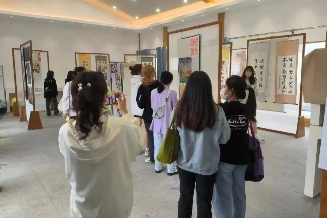 艺术与设计学院结合专业特色,举办“喜迎二十大,奋进新征程”书画暨课外作品展。展会围绕“喜迎党的二十大”主题,汇集了近百幅作品,同学们用专业实践作品向党的二十大胜利召开献礼。展厅内,师生们欣赏着挥毫落纸的神韵,感受着作品中对党和祖国的美好祝福。