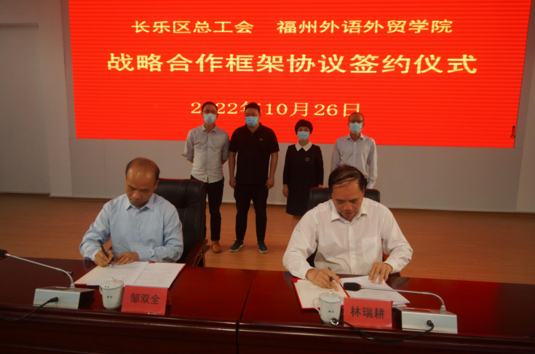 10月26日,我校与长乐区总工会签署战略合作协议,长乐区总工会党组书记、常务副主席林瑞耕、我校地方服务与合作办公室(乡村振兴学院)负责同志及相关部门参加签约仪式。