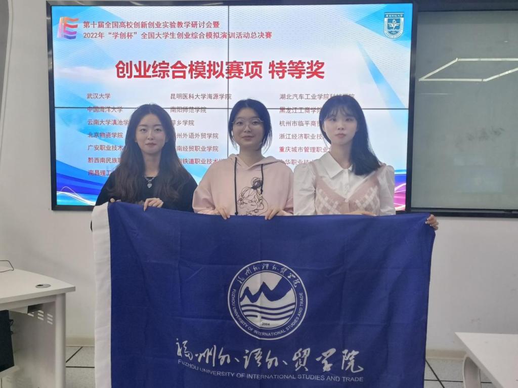 11月5日,第十届全国高校创新创业实验教学研计会暨2022年第九届“学创杯”全国大学生创业综合模拟演训活动总决赛顺利举办。经过激烈竞争,我校学子靳婉茗(财金学院)、陈娇桦(经管学院)、许丹烨(财金学院)组成的参赛队伍“梦之队”(指导老师:刘若福、陈常捷)在创业综合模拟竞赛主赛道创业综合模拟赛项中荣获特等奖,我校是省内唯一获特等奖的高校,我校师生连续三年夺得该赛事最高奖项。