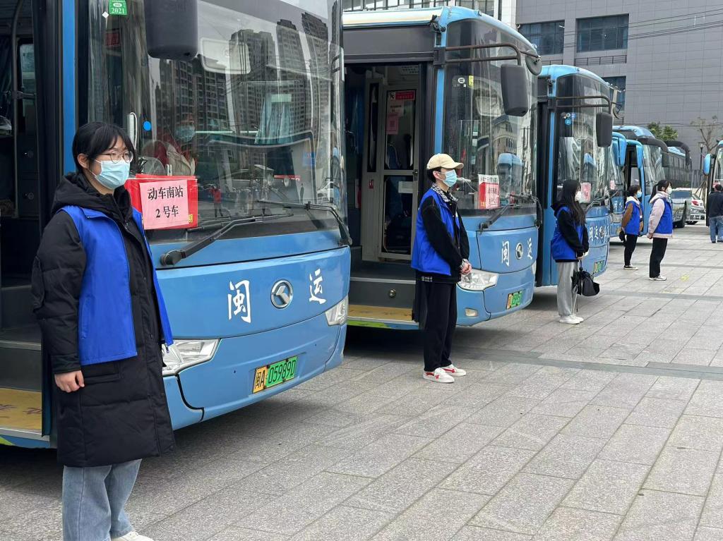时间紧,任务重。我校后勤部门迅速协调闽运交通运输有限公司增设返乡专车20余辆,线路囊括厦门、泉州、漳州等九大地市及福州的火车站、机场等交通枢纽,最大限度满足返乡学子需求。