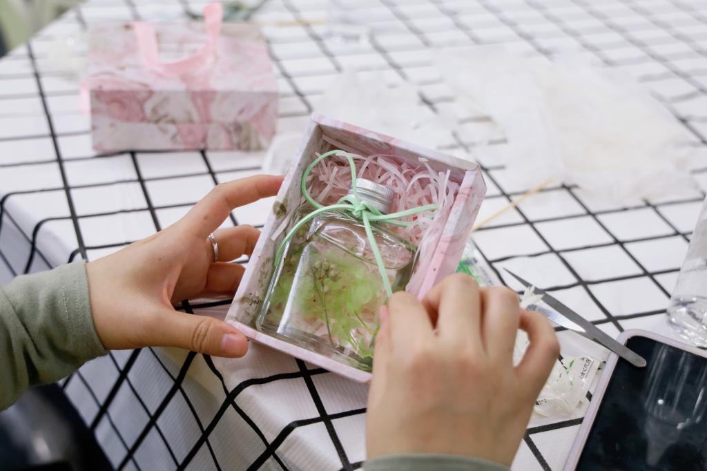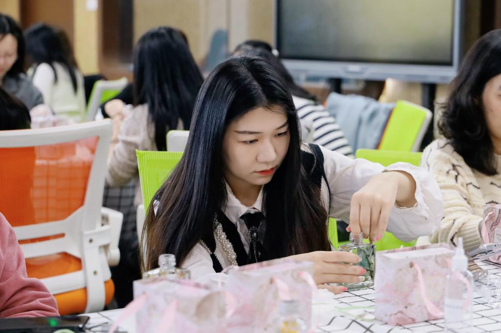 在校工会组织的春暖花开熠熠芳华“三八”国际妇女节主题活动中,女教职工们充分发挥自己的创意,将时令干花融入各式各样的香氛瓶,再添加天然植物精油,制作出一个个兼具精美、芳香且实用的个性香氛瓶。
