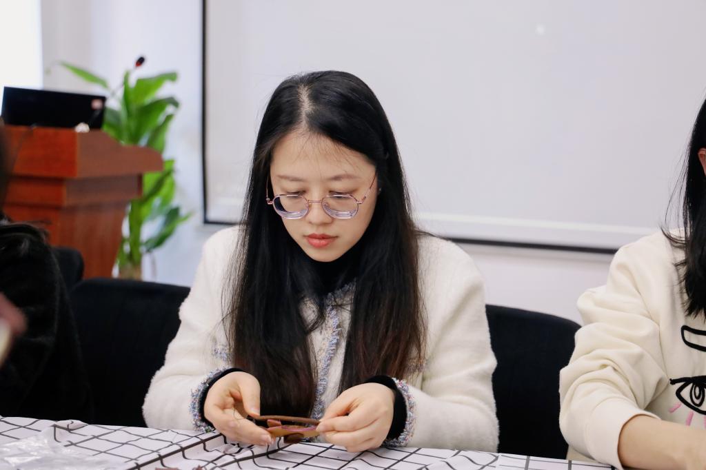 几片皮料、几条细线,在女同胞们手上瞬间就变成了各种造型精美的皮具挂饰。在制作过程中,大家相互交流、相互协作,气氛融洽美好。