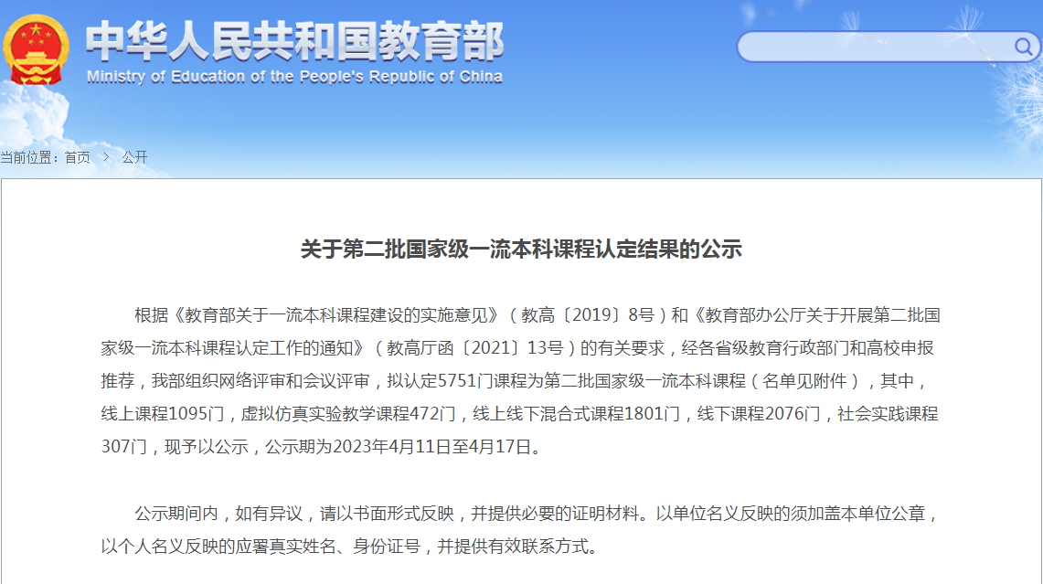 第二批国家级一流本科课程