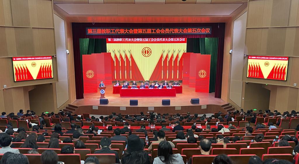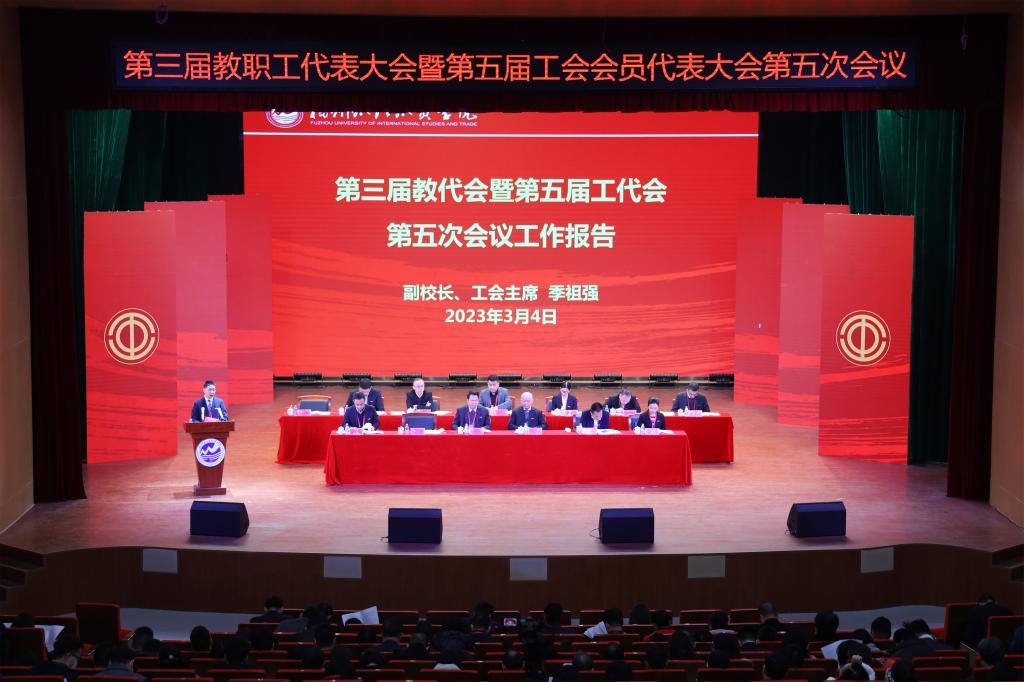 3月4日,我校第三届教职工代表大会暨第五届工会会员代表大会第五次会议隆重举行。校领导许明、陈炳钦、黄建平、季祖强,教代会、工代会正式代表及列席代表200余人出席会议。