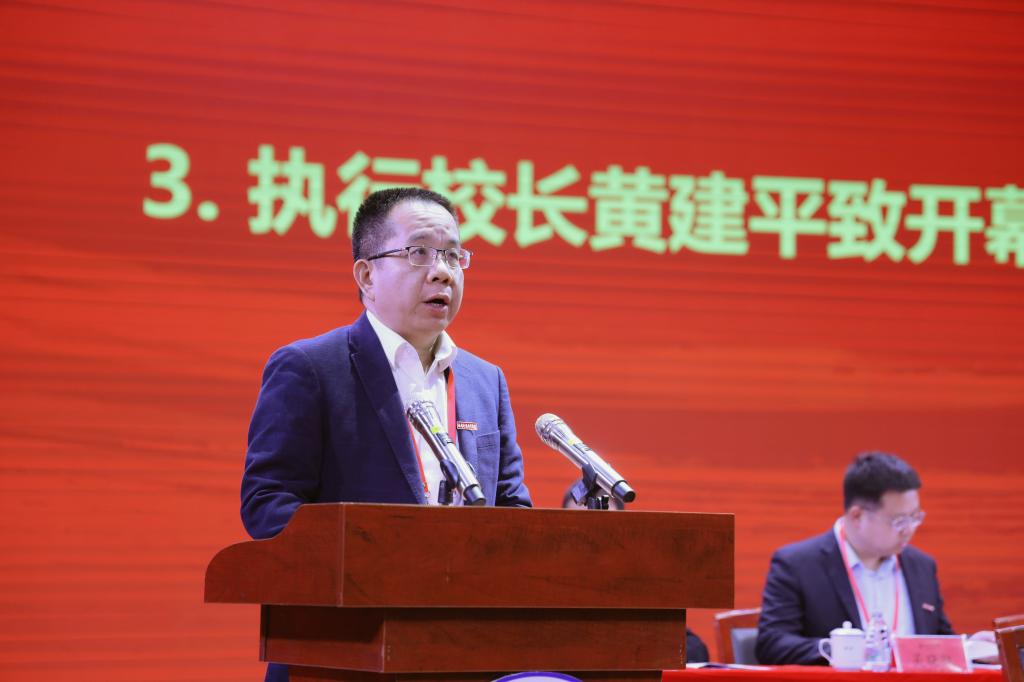 执行校长黄建平致开幕词,他代表学校董事会、党政班子向大会的召开表示热烈祝贺,希望全体代表以习近平新时代中国特色社会主义思想为指导,认真履行代表职责,众志成城、团结鼓劲、开拓创新,共谋我校的高质量发展,共同书写我校树立同类高校“排头兵”样板的崭新篇章。