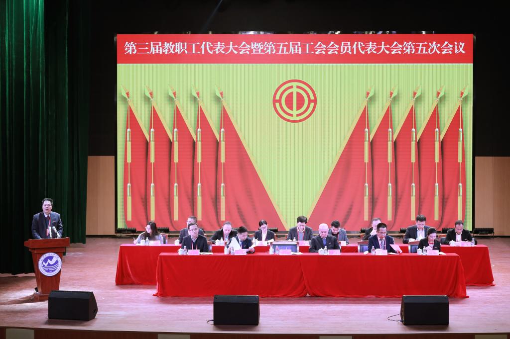 大会第一次全体会议审议了学校工作报告、第三届教代会暨第五届工代会第五次会议工作报告、法治工作报告、提案工作报告、女工委工作报告、经费审查报告。
