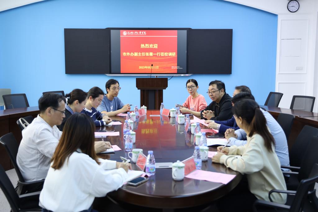 5月11日,福州市外事办副主任张薇一行莅临我校调研,并召开座谈会。市外办潘东晖、陈励,外国语学院院长赵会军、教学发展中心副主任刘贤昌、国际教育中心有关同志及教师代表等参加调研。