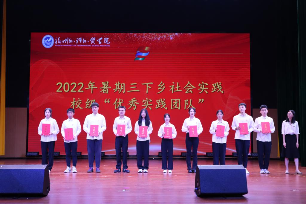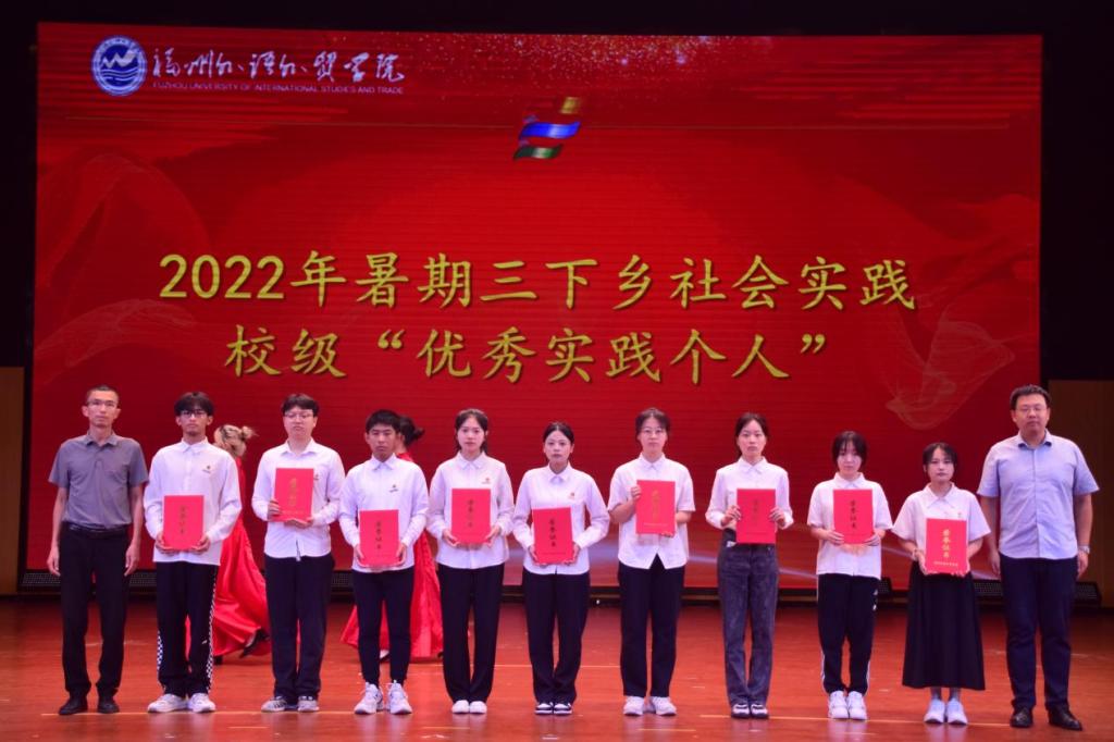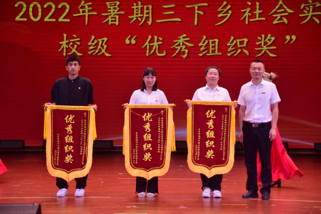活动在庄严的国歌声中拉开帷幕。会上表彰了2022年暑期“三下乡”社会实践省级“先进单位”“先进工作者”“先进个人”和校级“优秀实践个人”“优秀指导老师”“优秀成果奖”“优秀实践团队”“优秀组织奖”等先进集体和个人。