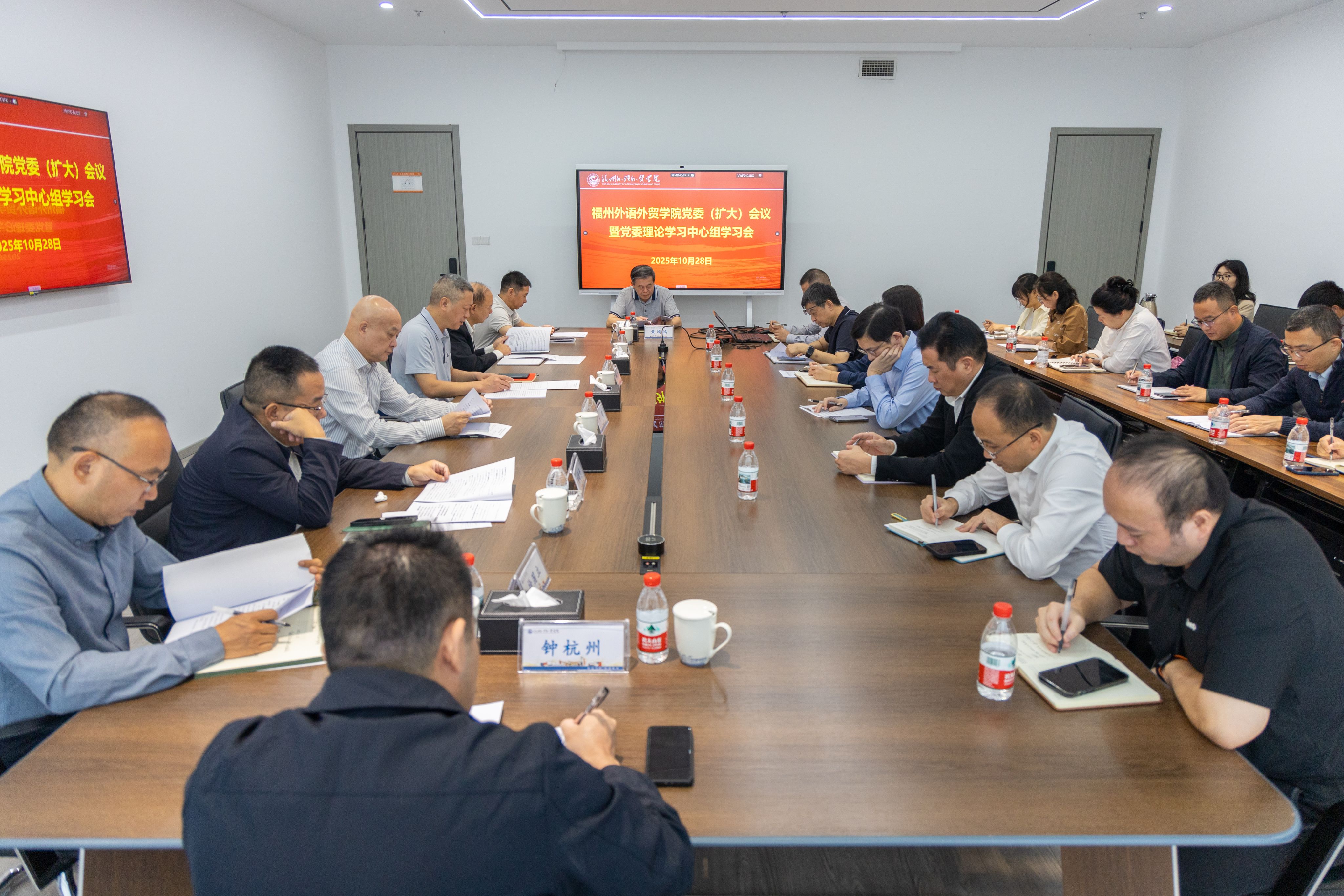 10月28日,乐鱼网页版召开党委理论学习中心组学习(扩大)会,专题学习研讨党的二十届四中全会精神。校党委书记陈林男主持并讲话,校党委委员,党委部门负责同志,各基层党委书记,直属党支部书记等参加。