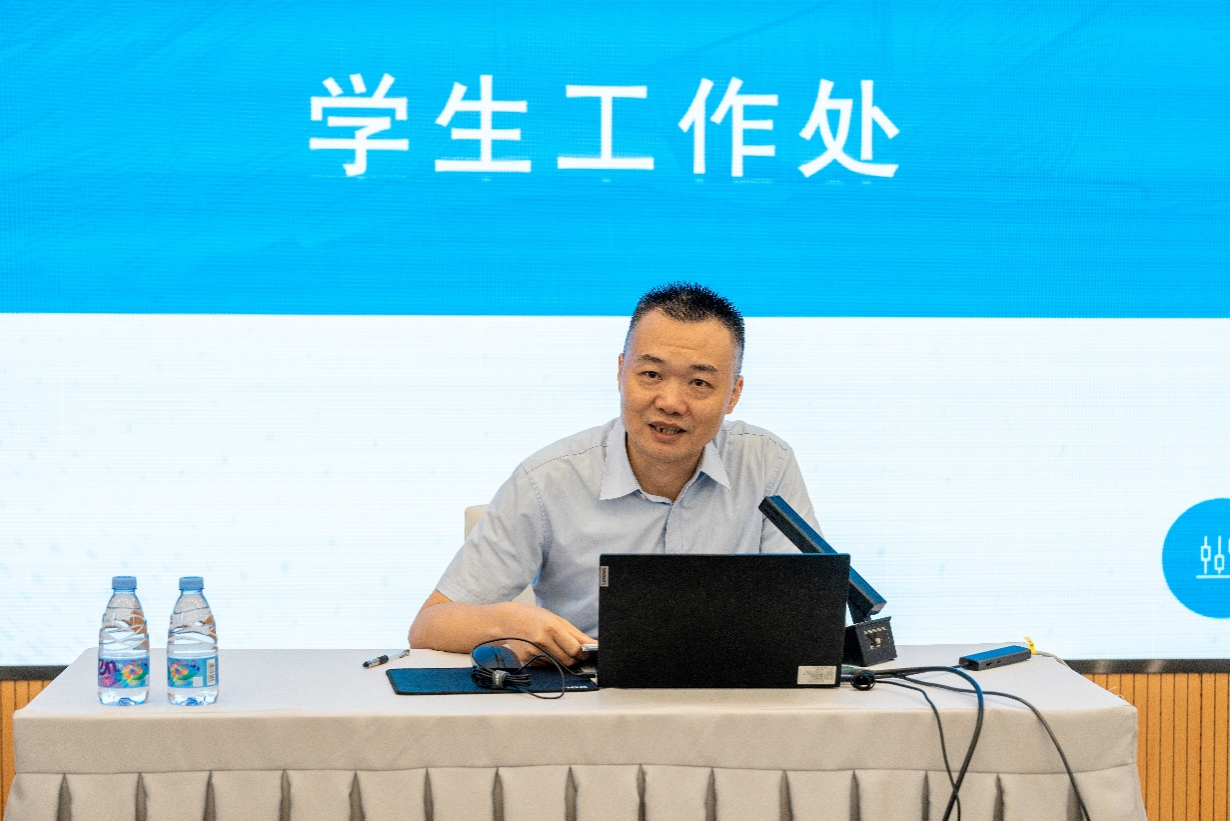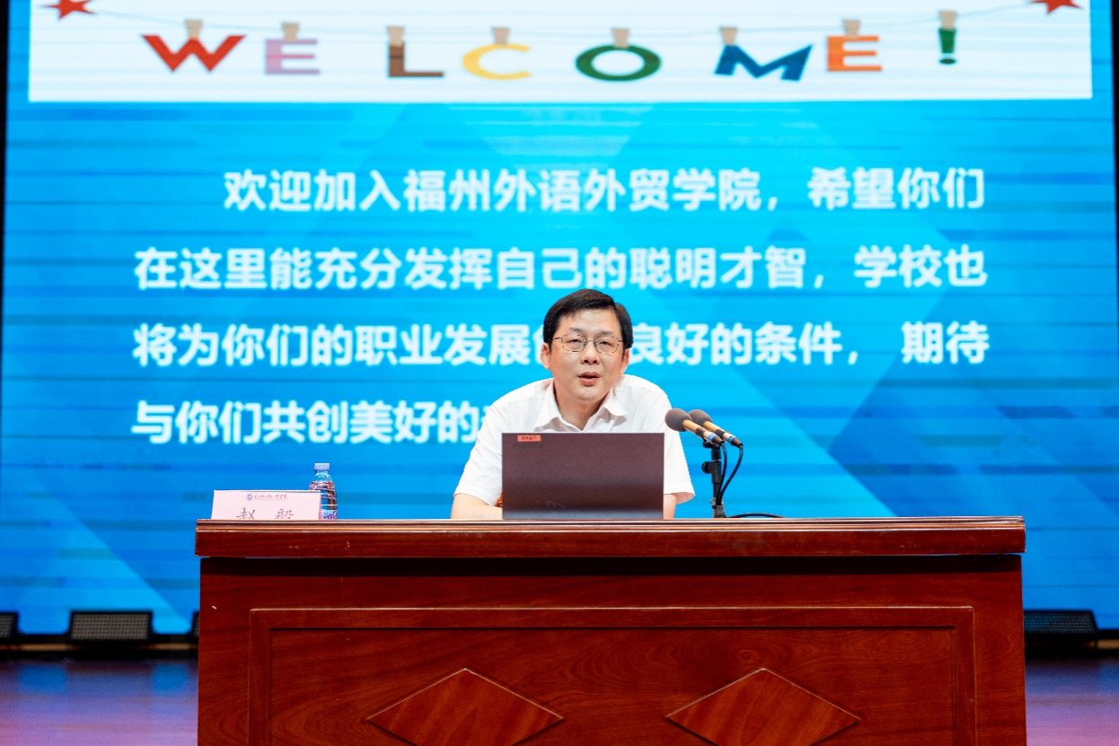 校长助理钟杭州代表学校对新入职教职工的到来表示欢迎,并作了《从“新”出发,携手同行——当好一名新时代的老师》专题讲座。